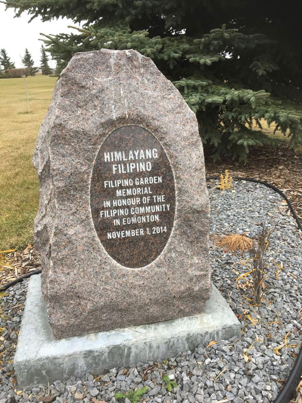 I also wish to mention and announce again at this juncture that EVERGREEN MEMORIAL GARDEN was generous enough to donate and dedicate a Spot and erected a Rock Memorial Shrine in honour of the Filipino Community in Edmonton which we named “HIMLAYANG FILIPINO” (Filipino Garden).