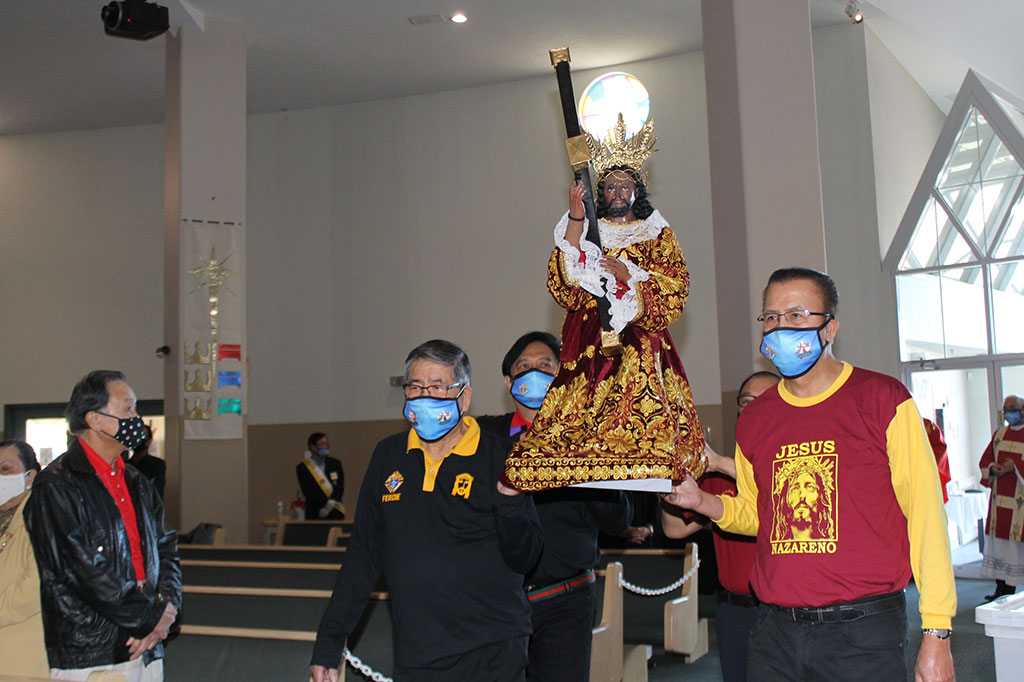 Once again despite the Covid-19 restrictions, K of C Nazareno Council celebrated the Feast of the Black Nazarene with a mass at St. Charles Parish church, last Saturday January 9, 2021. A limited number of devotees from the members of the Council honor and venerate the image of the Black Nazarene of Quiapo. Grand Knight Ferdie Mendita led the celebration which was officiated by Rev. Fr. Marc Kramer and Deacon Bong Estoque of St. Charles Parish. Lito Reyes, PSD of the Knight if Columbus expressed his appreciation to the Council for keeping the tradition alive.